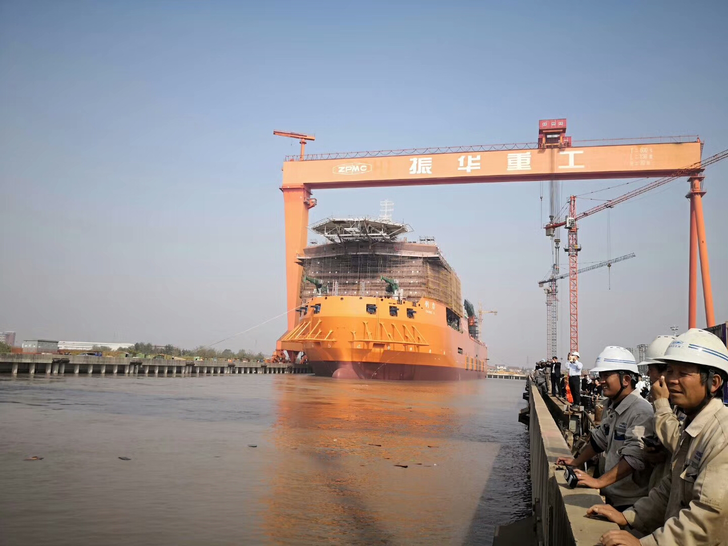 上海振華重工承建4500T起重?fù)岆U打撈船順利下水