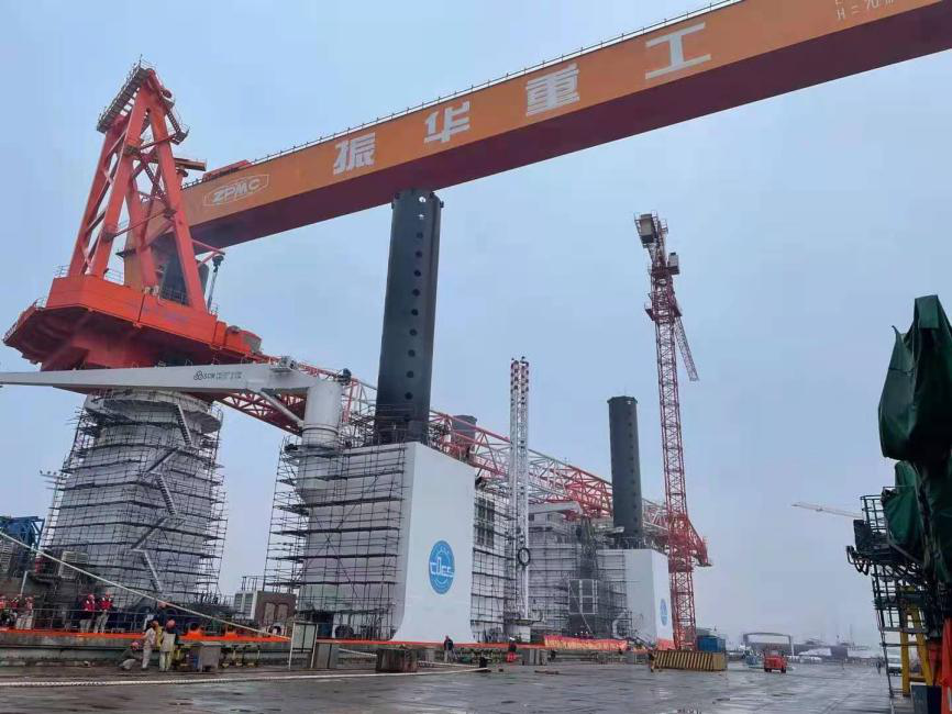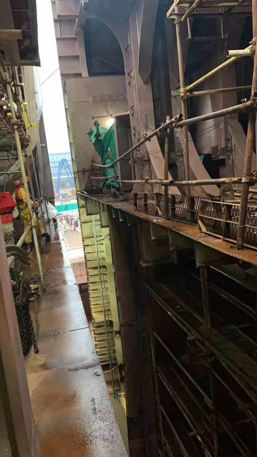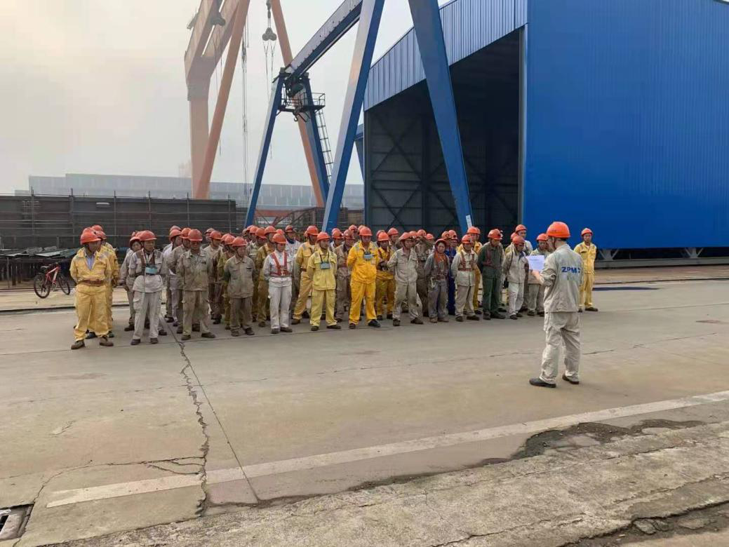 1200T風電安裝船南通豪通船務有限公司,除承接主船體制作及合攏外。更是承接了該船三分之二的特殊結構制作及合攏(包含3個圍井分段2個固樁室)工程。這些工程對精度和焊接質量有著較高的要求,總經理薛志堅掛帥督導,安排最優(yōu)秀的裝配班組和最好的焊工,將一份優(yōu)異的成績單交到了船東和振華重工手中,得到了業(yè)主的肯定。