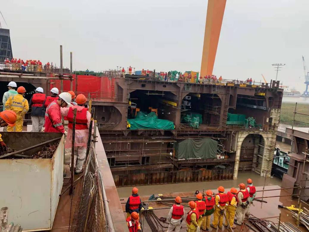南通豪通船務有限公司承接了“JSD6000鋪管船”總段對接合攏工程。針對該項工作量大,環(huán)境復雜,工期緊的特點,公司“調兵遣將”安排最優(yōu)秀的班組負責該工程,各級人員也充分發(fā)揮不怕苦,不怕累的精神,夜以繼日、保質保量的完成了振華重工安排給我們的任務,確保了該船能夠順利下水,同時公司也受到振華和船東一致好評。